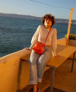 Pretty leather bucket bag with a clean, chic and minimalist style. Simple to handle with a certain lightness, allowing it to be worn on any occasion and at any time of the day!