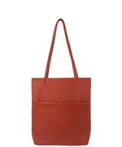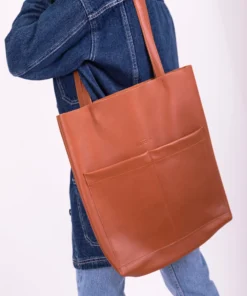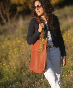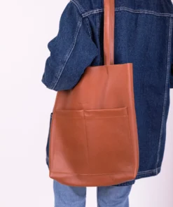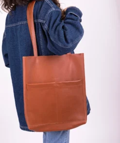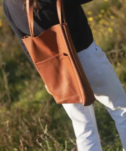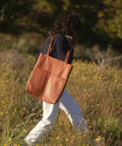 Handbag, tote bag, in leather, cognac color