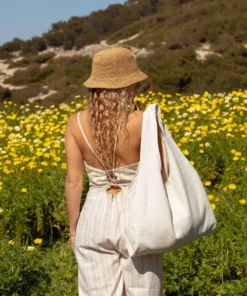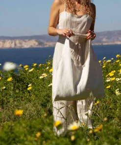 The Marthe tote bag with an upcycled feel. Easy to carry, it’s lightweight, practical, and chic. Each model is unique, or available in mini editions.